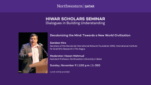 On November 9, 2025 Sandew Hira is invited to speak at the Hiwar Scholars Seminar series organized by the Northwestern University in partnership with the Liberal Arts Program. He will be in Doha from November 8-11. His theme is the transition from the current colonial world civilization to a new world civilization.